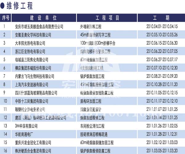 宏順建設工程有限公司是國家批準成立的專業(yè)高空作業(yè)企業(yè):承攬過(國內.國外)煙囪新建、煙囪防腐、磚煙囪新建、煙囪改造、煙囪維修、煙囪脫硫防腐、煙囪拆除加高、煙囪滑膜等高空作業(yè)工程。具有“不搭腳手架 、 不需要停產(chǎn)”施工特點。
